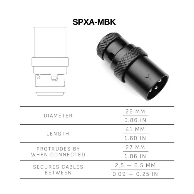 - Low-profile 90° angled male XLR design